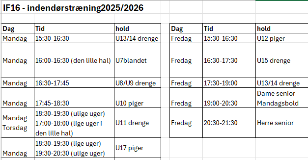 Indendørstræningstider 2025/2026