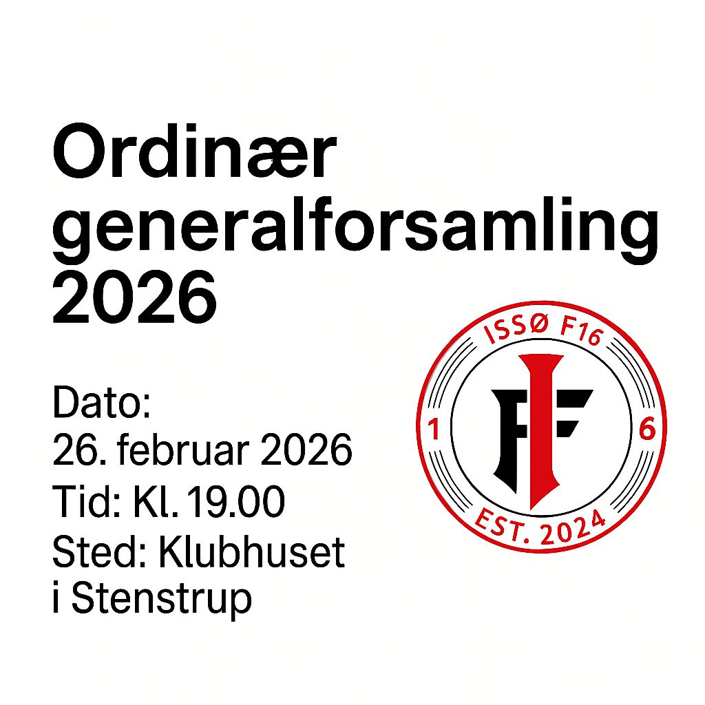 Issø F16 inviterer alle medlemmer til foreningens første ordinære generalforsamling. Generalforsamlingen er foreningens øverste myndighed, og alle fremmødte medlemmer har stemmeret.